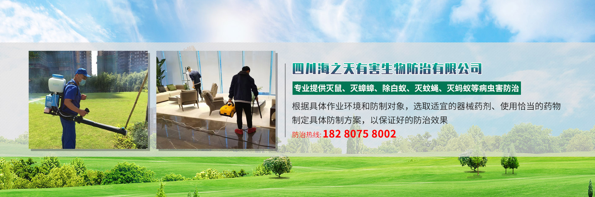 四川海之天有害生物防治有限公司坐落于美麗的科技城綿陽(yáng),公司老板從事本行業(yè)十余年,有著豐富的經(jīng)驗(yàn)和專業(yè)的團(tuán)隊(duì)。本公司使用的藥物,均系經(jīng)國(guó)家藥檢部門和衛(wèi)生防疫部門批準(zhǔn)的安全、低毒的城市衛(wèi)生用藥,并根據(jù)具體作業(yè)環(huán)境和防制對(duì)象,選取適宜的器械藥劑、使用專業(yè)的藥物,制定具體防制方案,以確保好的防治效果。內(nèi)、外環(huán)境所用藥物:安全、低毒、無(wú)味無(wú)刺激、環(huán)保、高效果、無(wú)污染,對(duì)住宿的賓客,門診、住院的病人,學(xué)習(xí)、辦公的人員,都沒有不良刺激,特別適用于追求高質(zhì)量環(huán)境的賓館、飯店、醫(yī)院、機(jī)關(guān)、學(xué)校等場(chǎng)所! 經(jīng)營(yíng)項(xiàng)目:全市范圍內(nèi)即周邊城市的大型工廠、工業(yè)園、社區(qū),山莊,度假村,旅游景點(diǎn),賓館、飯店,公寓、寫字樓、醫(yī)院、政府機(jī)關(guān)、餐飲業(yè)、食品加工業(yè)、倉(cāng)儲(chǔ)等各企事業(yè)單位上門消殺服務(wù),綜合治理,可以選擇一次用藥或包年服務(wù),以合理的費(fèi)用提供更好的服務(wù),讓我們一同攜手,共同創(chuàng)造美好、健康、潔靜的生活環(huán)境! 我們的理念:本公司采用生物滅蟲、綜合用藥、除蟲完善、藥效持久,安全、環(huán)保、對(duì)人畜安全無(wú)害,解決您的后顧之憂。本公司提供專業(yè)技術(shù)人員免費(fèi)上門檢查白蟻、害蟲服務(wù)!公司在國(guó)家規(guī)定節(jié)假日照樣安排有技術(shù)人員正常上班,歡迎拔打熱線咨詢18781110022